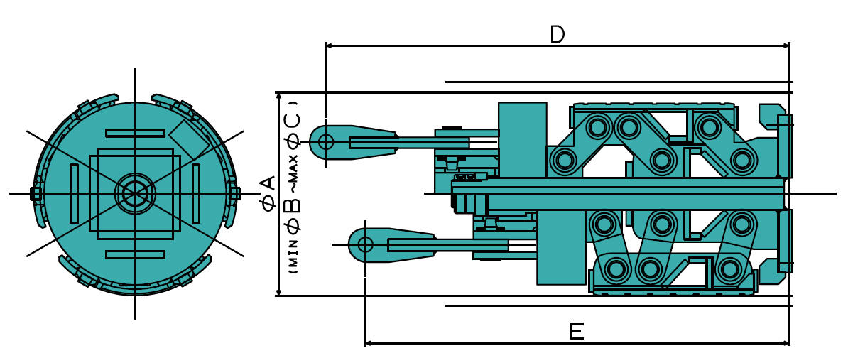 動力源・油圧源が要らないため、ホースやケーブルの取り回しが不要